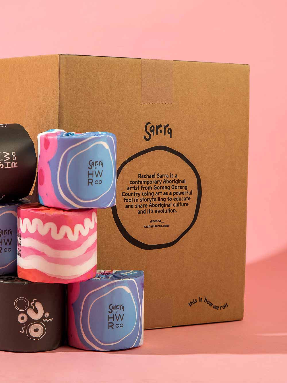 Sarra x HWRCo Local Artist Collab – 100% Recycled Toilet Paper – 48 Rolls